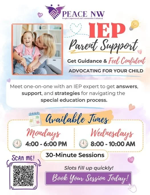 Navigating the IEP process can feel overwhelming — you don’t have to do it alone. Join our 30-minute Parent Support Sessions to ask questions, get guidance, and better understand how to support your child in special education.