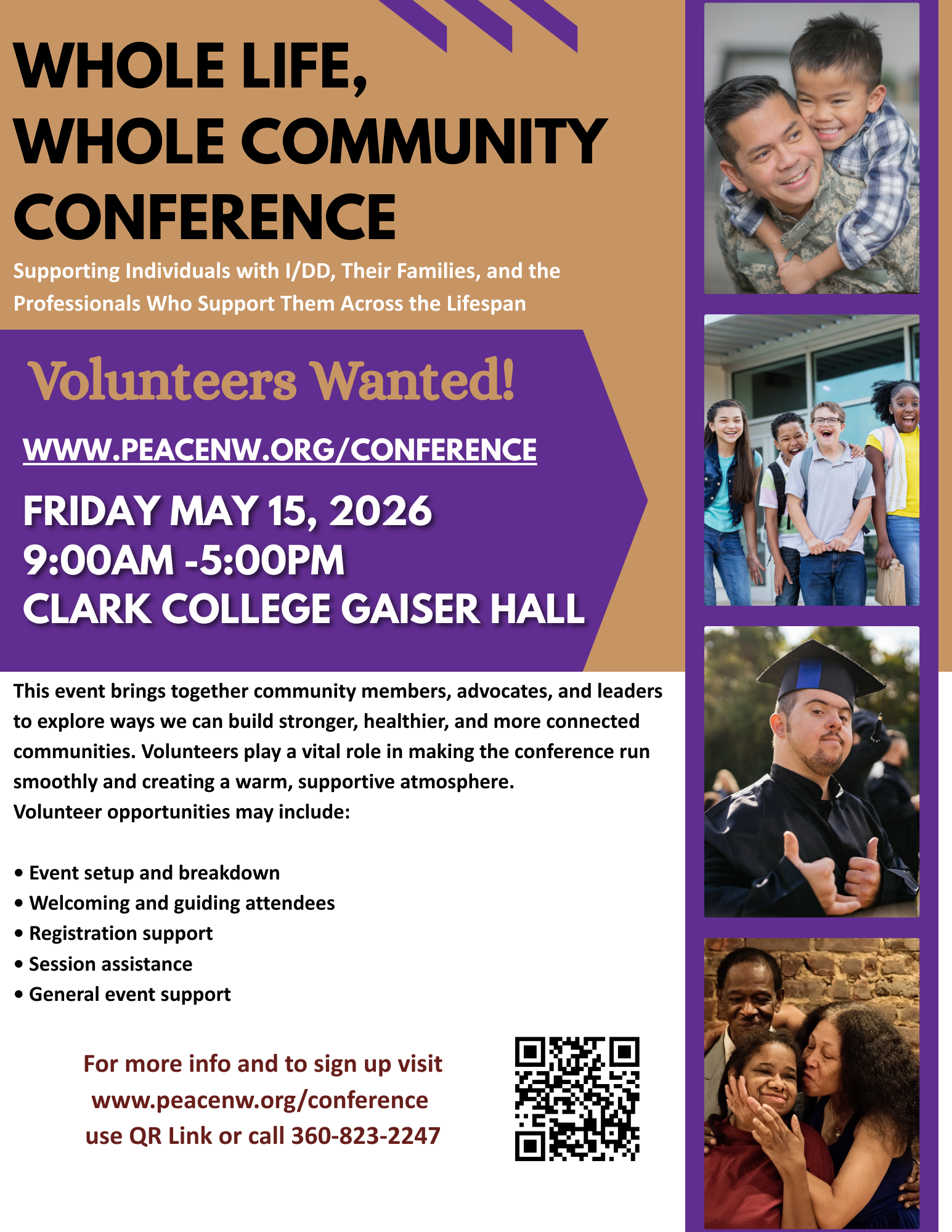 We’re looking for enthusiastic volunteers to help make the Whole Life Whole Community Conference a welcoming, inspiring, and impactful experience for everyone who attends.